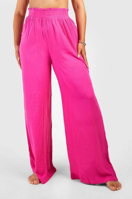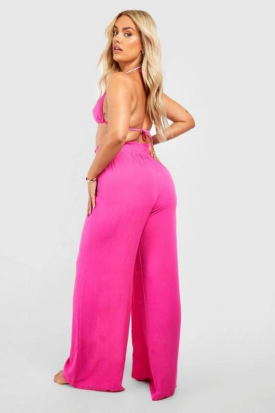BOOHOO Plus Crinkle Rayon Beach Pants