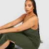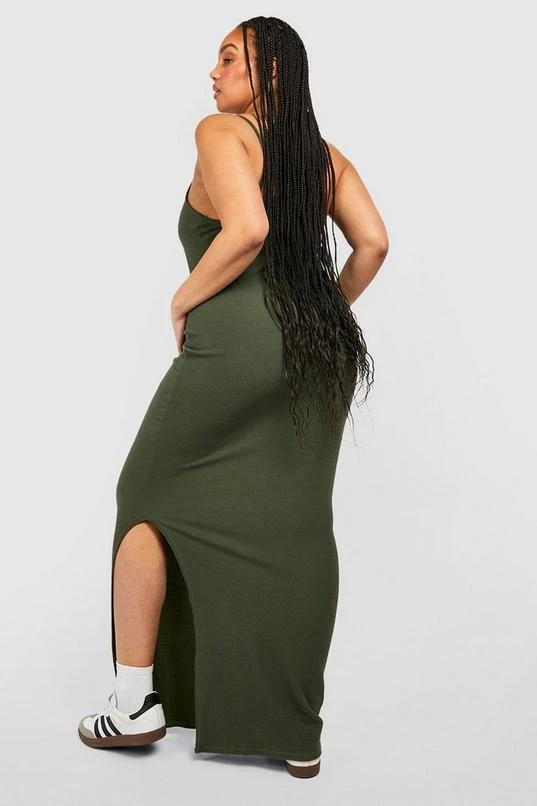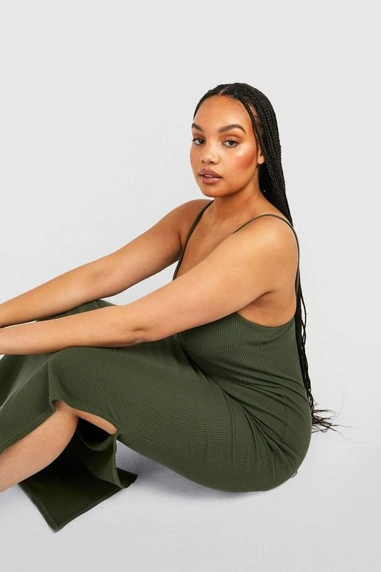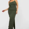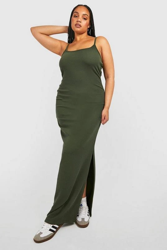 BOOHOO Plus Crinkle Rib Strappy Split Maxi Dress