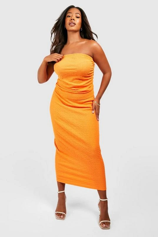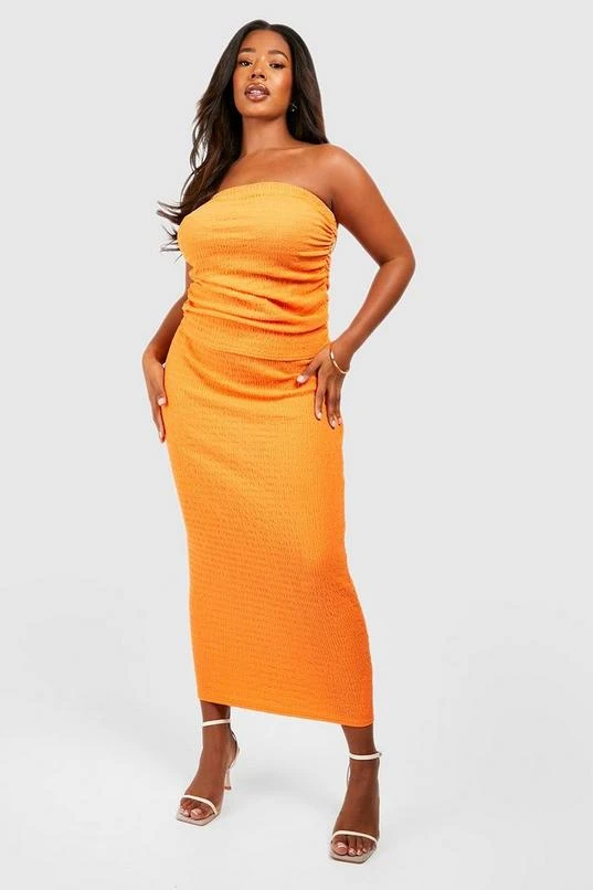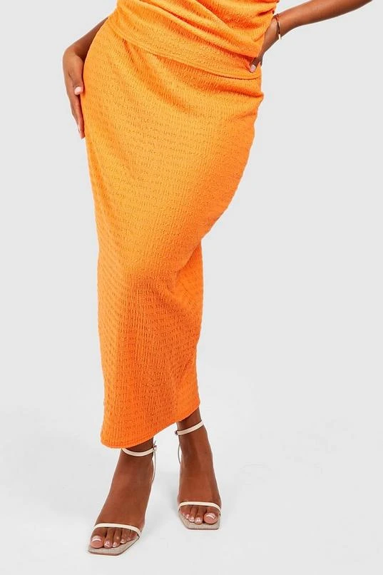 BOOHOO Plus Crinkle Textured Midi Skirt