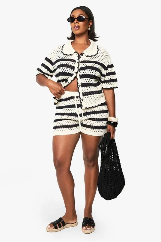 BOOHOO Plus Crochet Stripe Short
