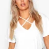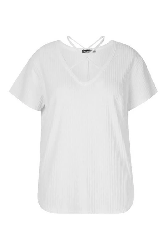 BOOHOO Plus Cross Front Strap Ribbed T-Shirt