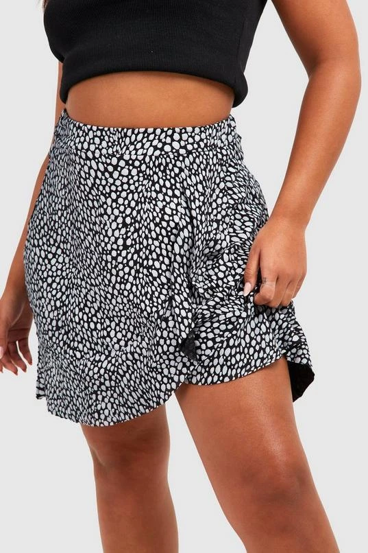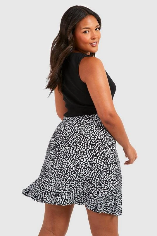 BOOHOO Plus Dalmatian Print Ruffle Skater Skirt