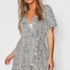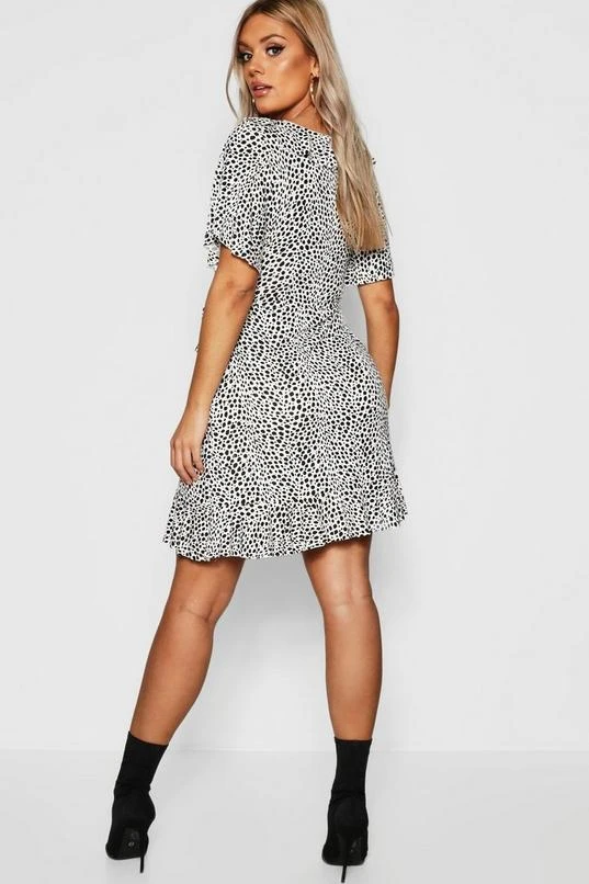 BOOHOO Plus Dalmatian Print Ruffle Tea Dress