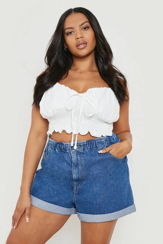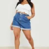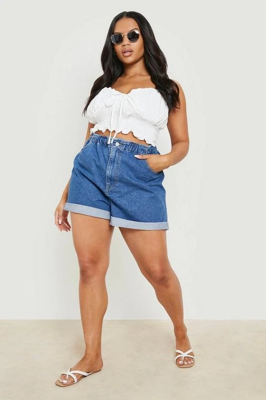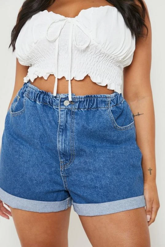 BOOHOO Plus Denim Elasticated Waist Mom Short