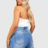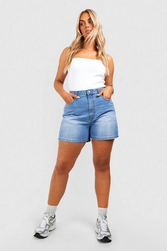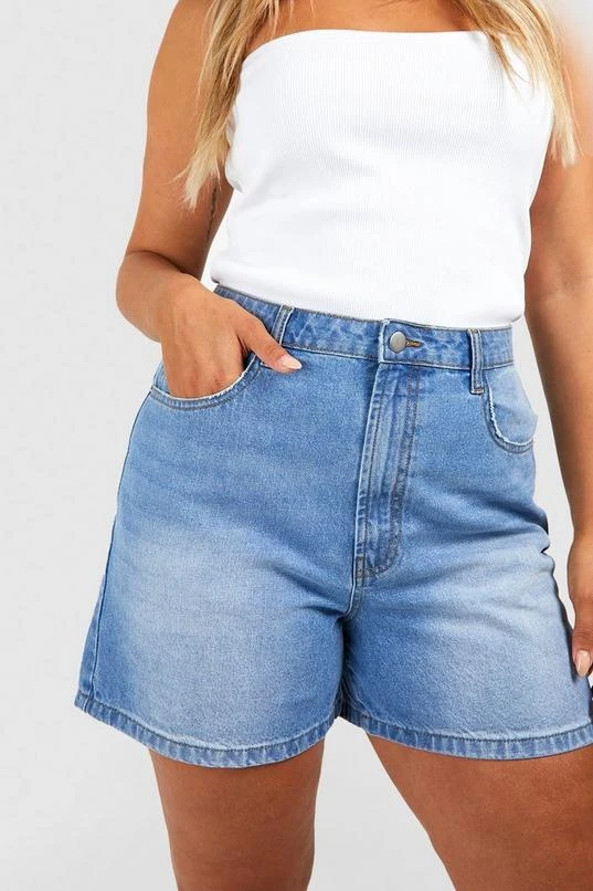 BOOHOO Plus Denim Longline Mom Shorts
