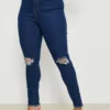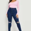 BOOHOO Plus Denim Rip Knee & Frayed Hem Skinny Jeans