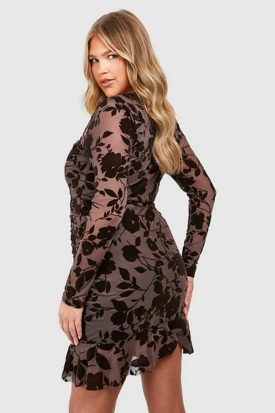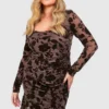 BOOHOO Plus Devore Ruched Bodycon Dress