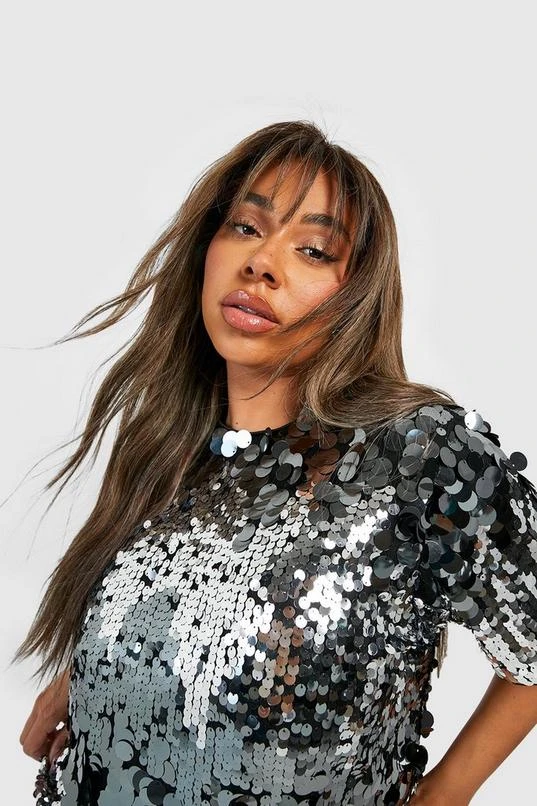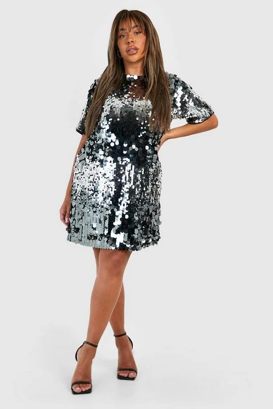 BOOHOO Plus Disc Sequin Oversized T-shirt Party Dress