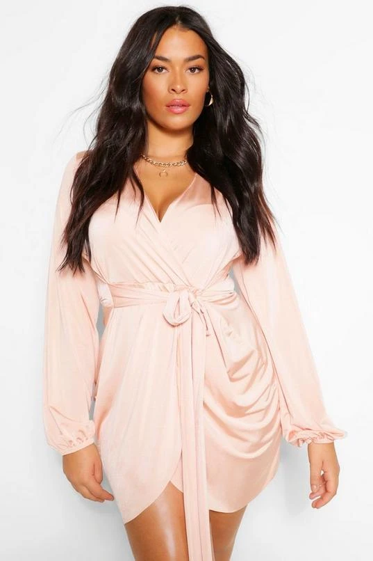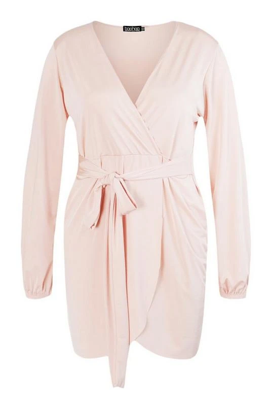 BOOHOO Plus Disco Slinky Belted Wrap Dress