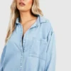 BOOHOO Plus Distressed Denim Shirt Dress