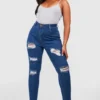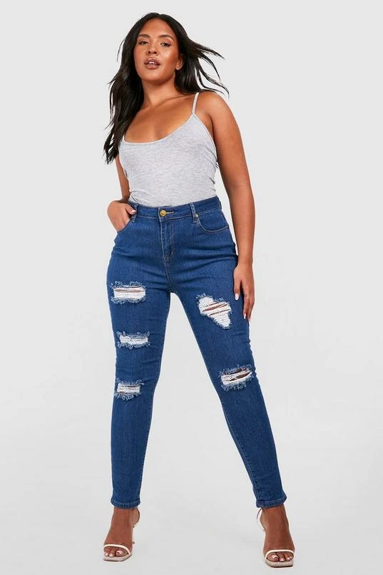 BOOHOO Plus Distressed Skinny Jeans