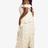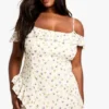 BOOHOO PLUS DITSY FLORAL OFF THE SHOULDER RUFFLE DETAIL MAXI DRESS