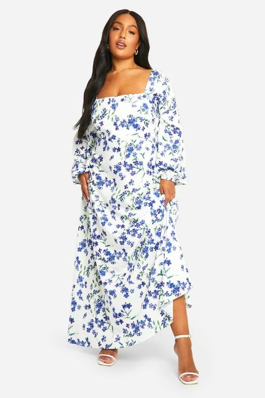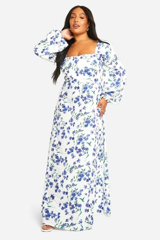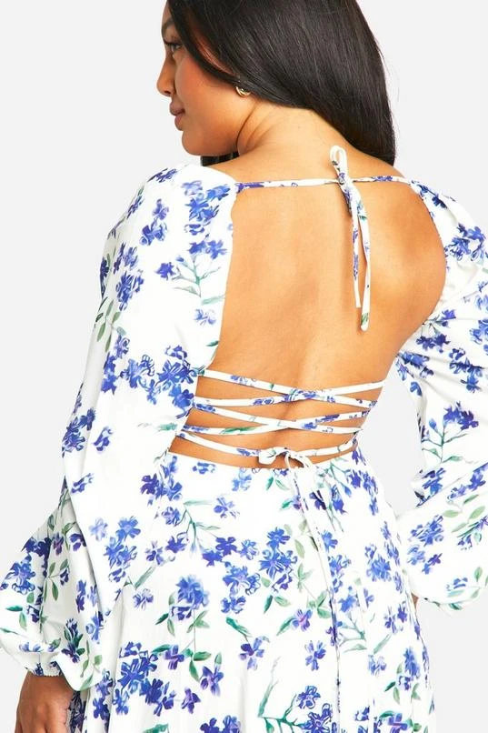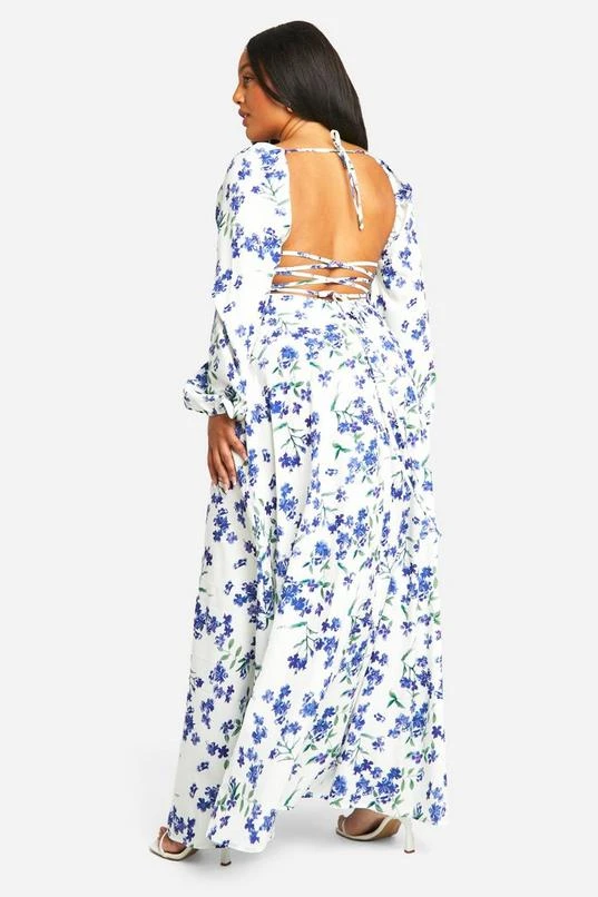 BOOHOO Plus Ditsy Floral Tie Back Detail Maxi Dress
