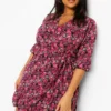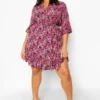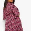 BOOHOO Plus Ditsy Floral Wrap Belted Dress