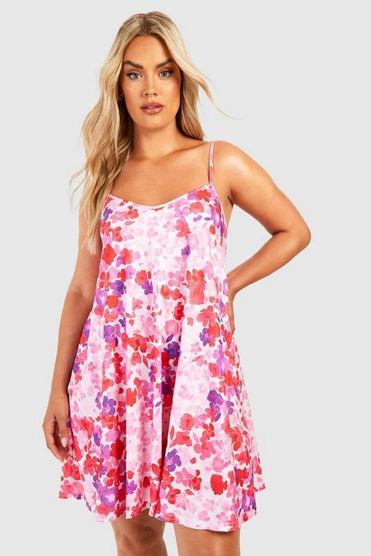 BOOHOO Plus Ditsy Print Swing Dress