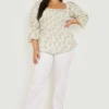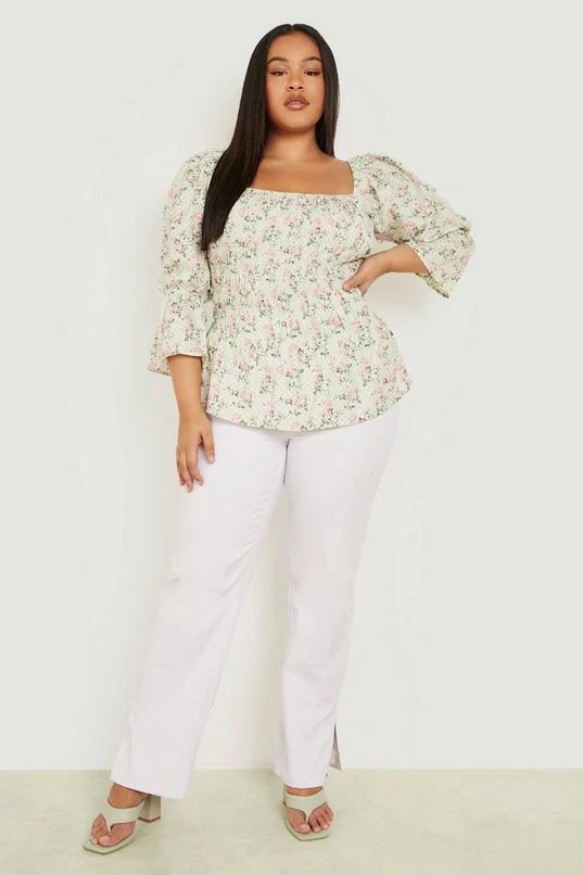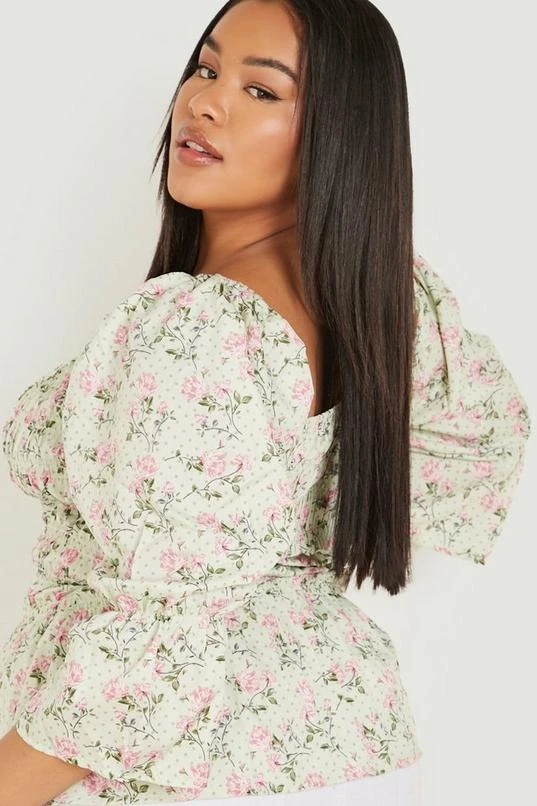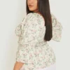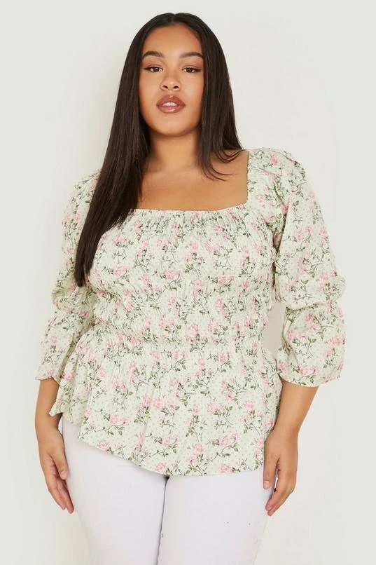 BOOHOO Plus Ditsy Spot Floral Shirred Frill Blouse