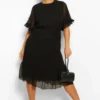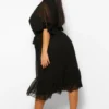 BOOHOO Plus Dobby Mesh Angel Sleeve Midi Dress