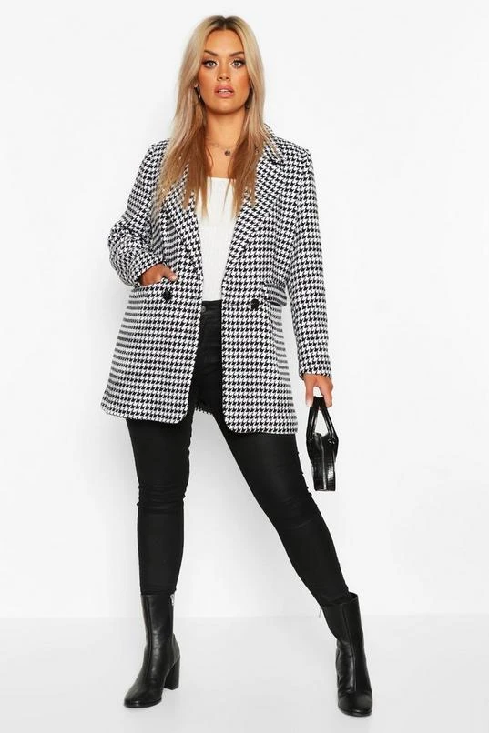 BOOHOO Plus Dogtooth Heavy Weight Blazer