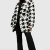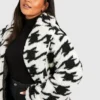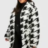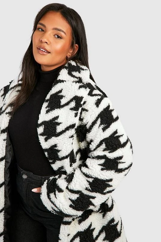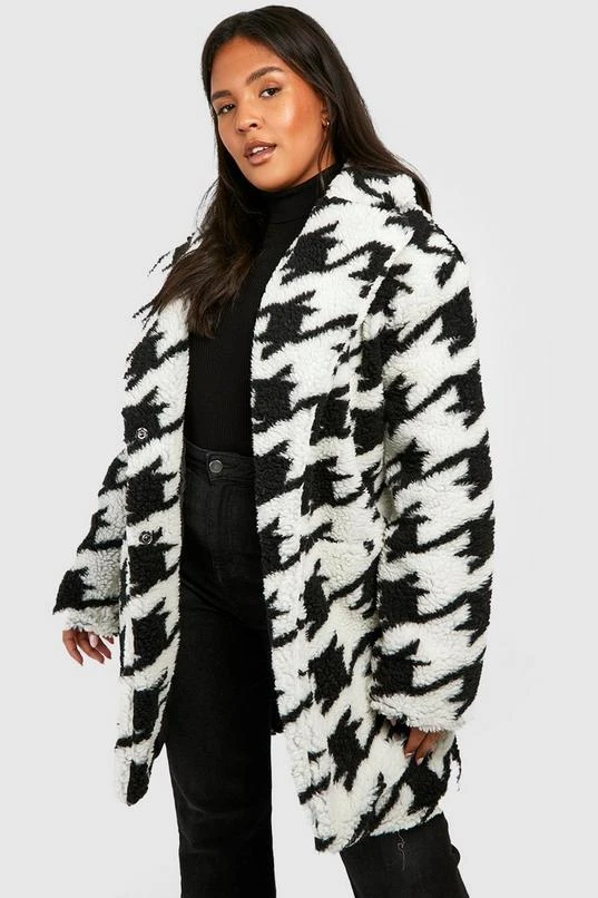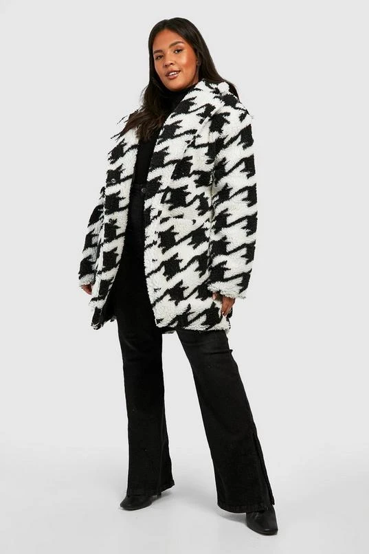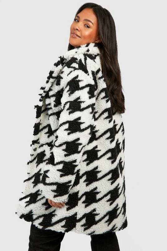 BOOHOO Plus Dogtooth Teddy Fur Coat