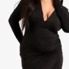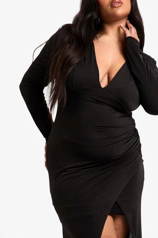 BOOHOO Plus Double Shoulder Pad Wrap Maxi Dress