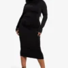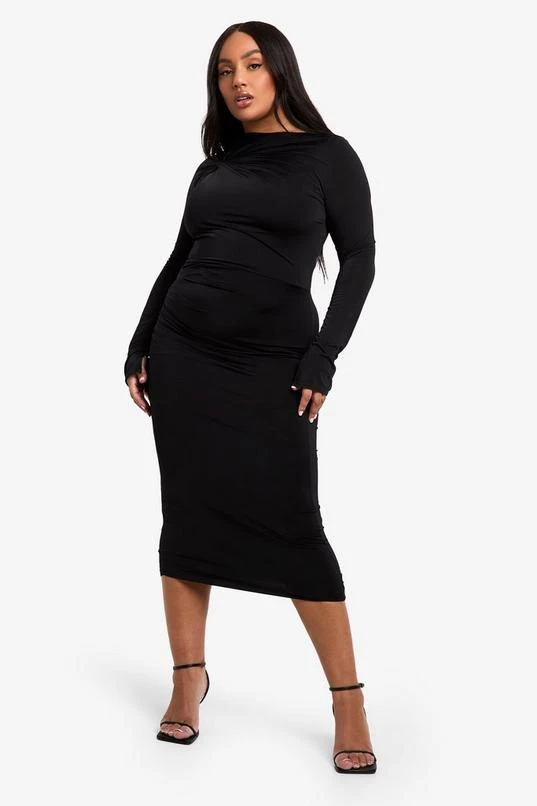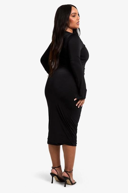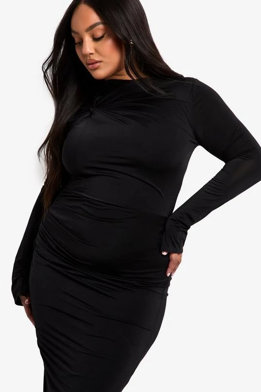 BOOHOO Plus Double Slinky Knot Detail Ruched Midi Dress