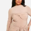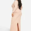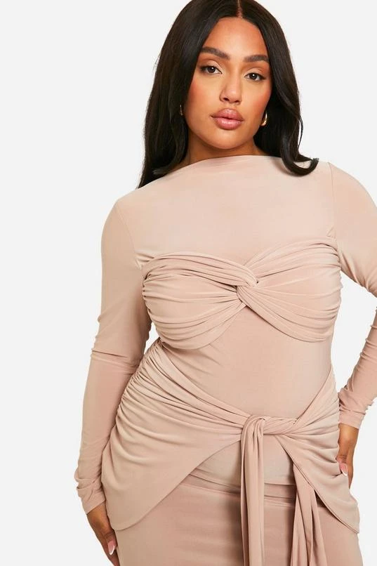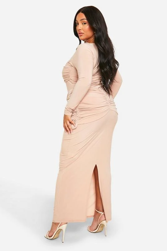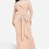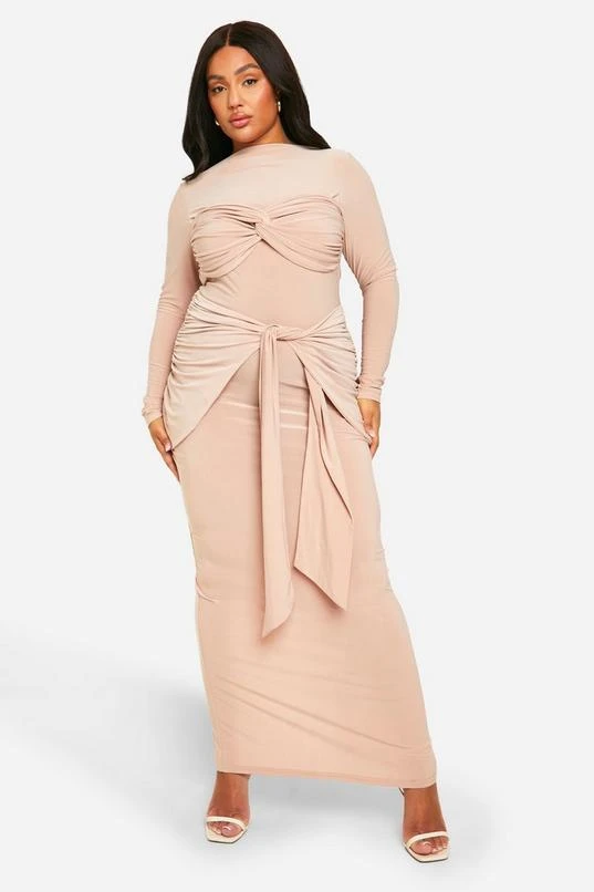BOOHOO Plus Double Slinky Ruched Tie Maxi Dress