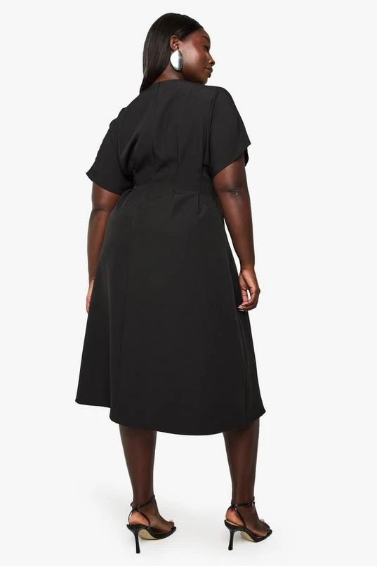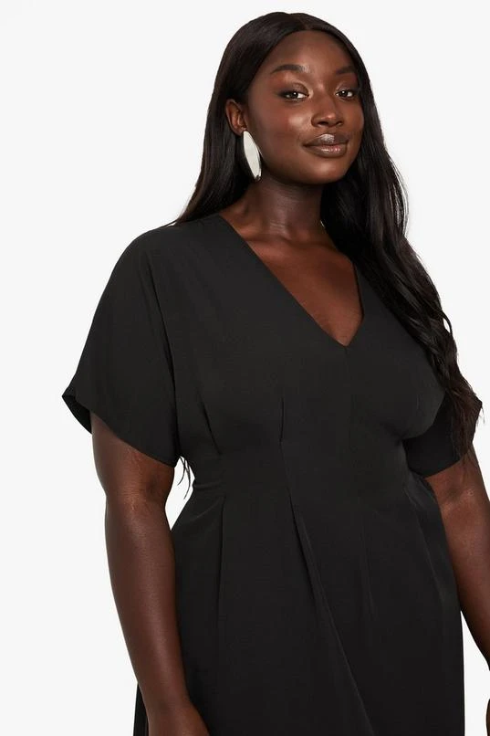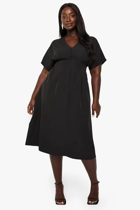 BOOHOO PLUS DROPPED SHOULDER PLEATED MIDI DRESS