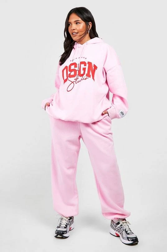 BOOHOO Plus Dsgn Studio Script Oversized Hoodie Tracksuit