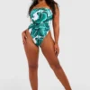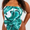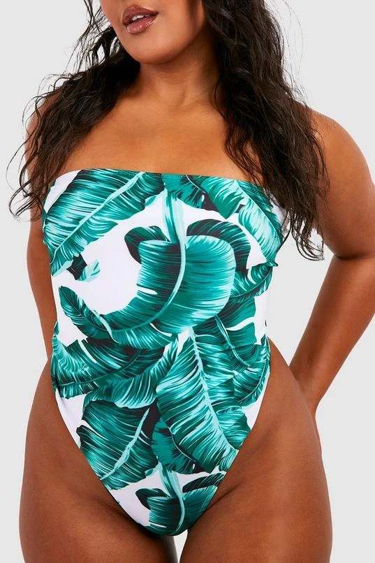 BOOHOO Plus Essentials Leaf Print Bandeau Swimsuit