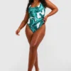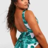 BOOHOO Plus Essentials Leaf Print Swimsuit