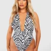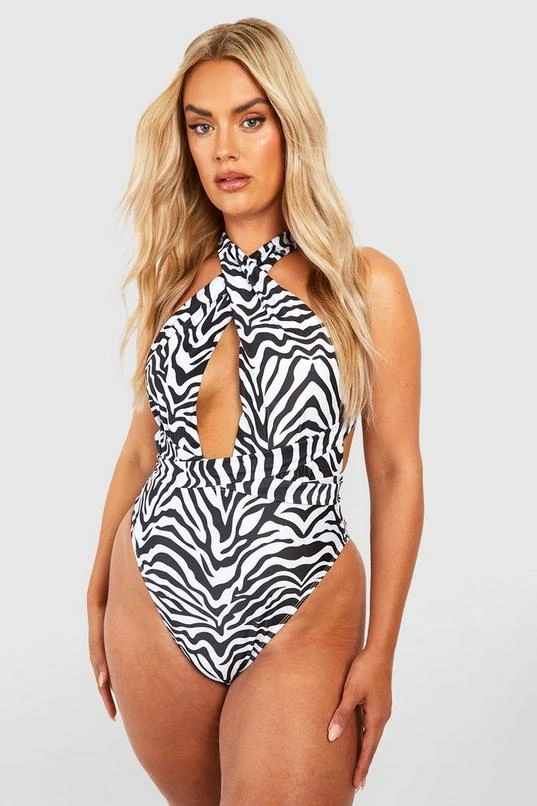 BOOHOO Plus Essentials Zebra Print Multiway Swimsuit