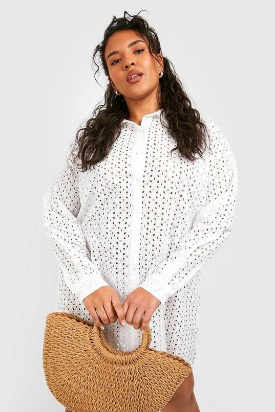 BOOHOO Plus Eyelet Anglaise Beach Shirt
