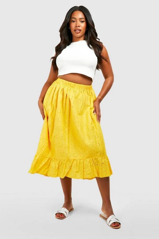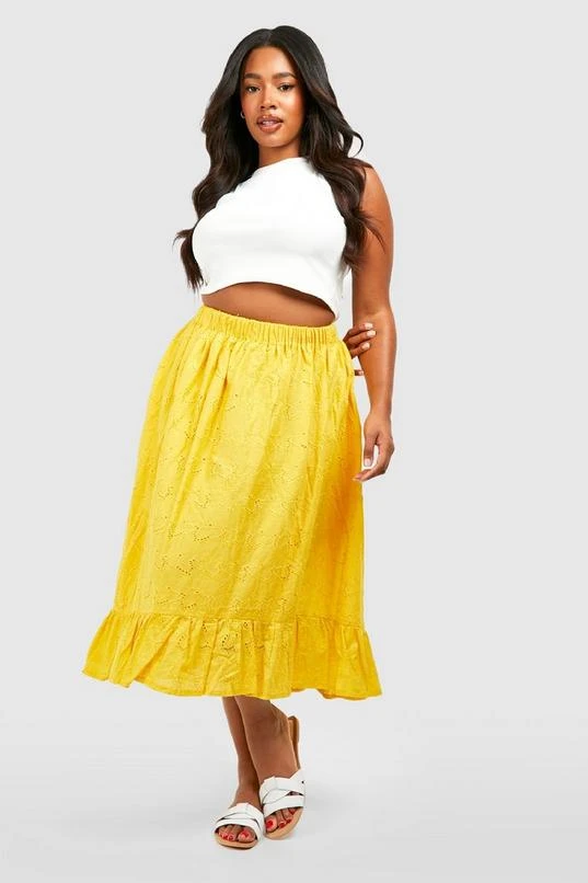 BOOHOO Plus Eyelet Dipped Hem Midi Skirt
