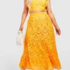 BOOHOO Plus Eyelet Frill Hem Midi Skirt