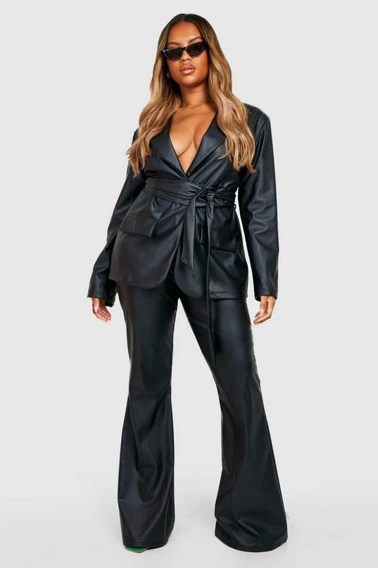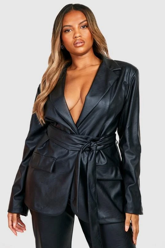BOOHOO Plus Faux Leather Obi Tie Blazer