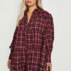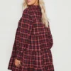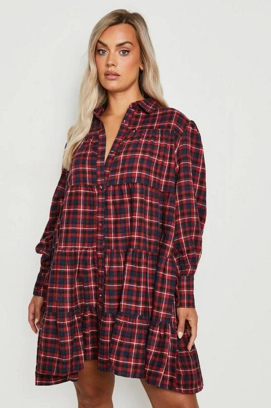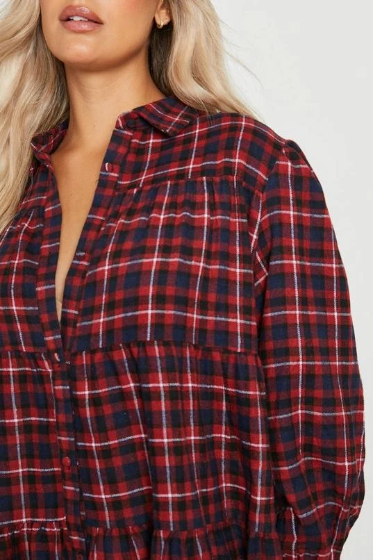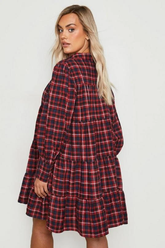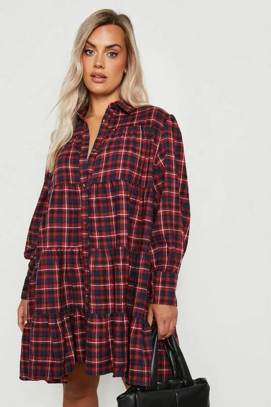 BOOHOO Plus Flannel Ruffle Hem Oversized Smock Dress