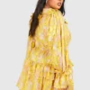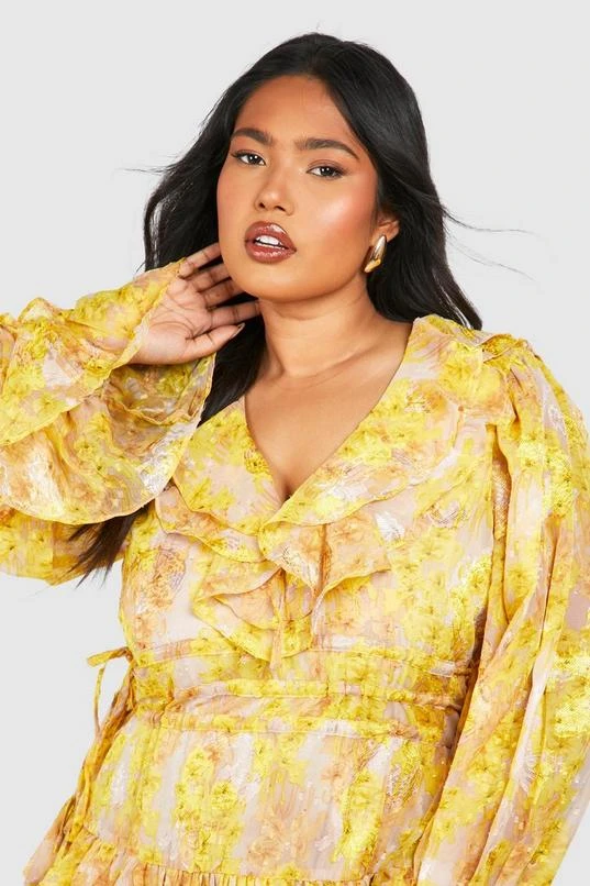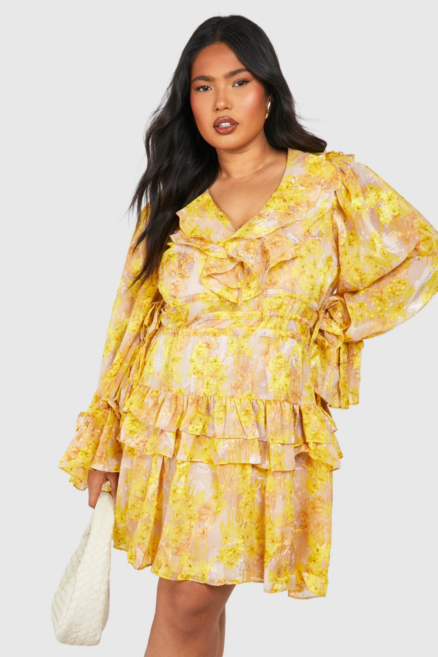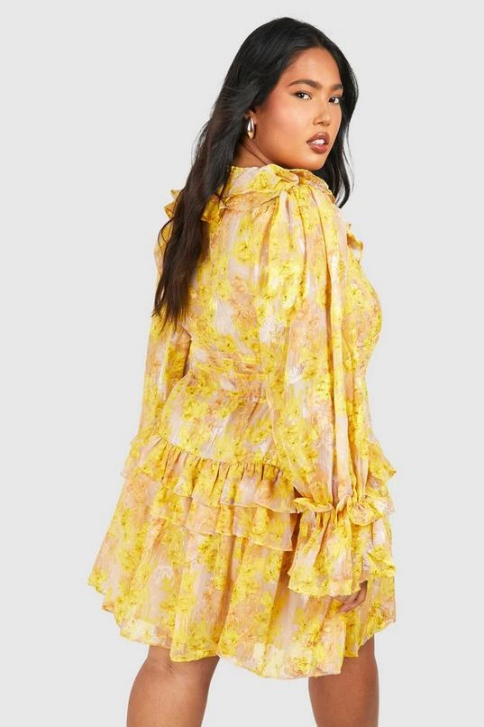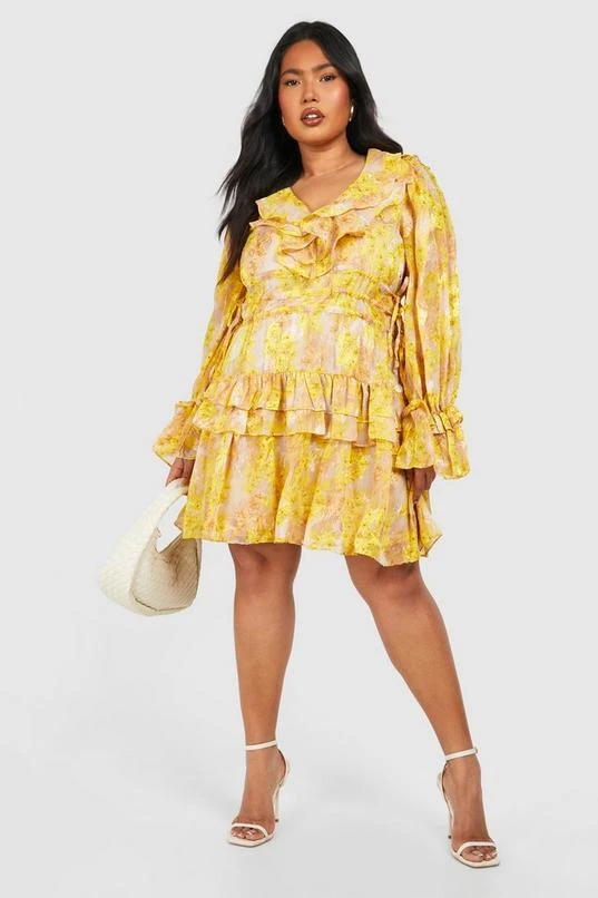 BOOHOO Plus Floral Chiffon Ruffle Layer Skater Dress