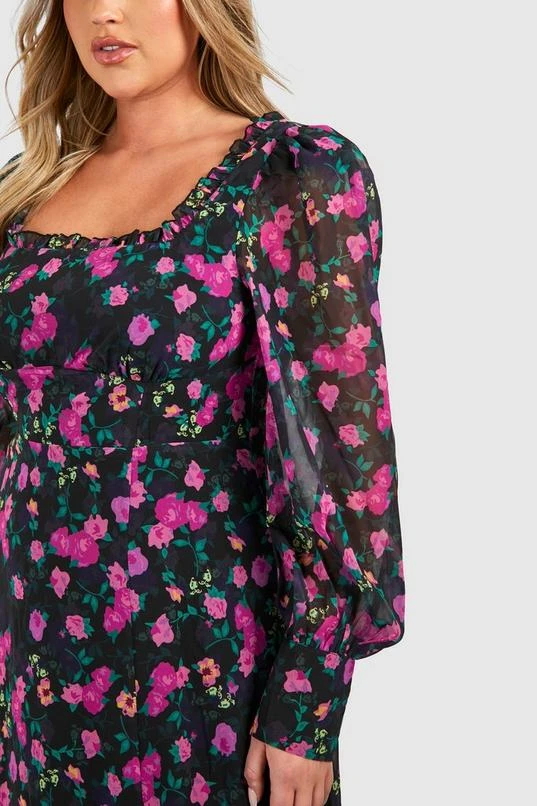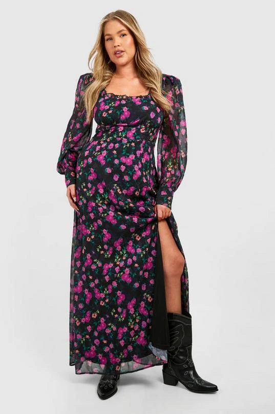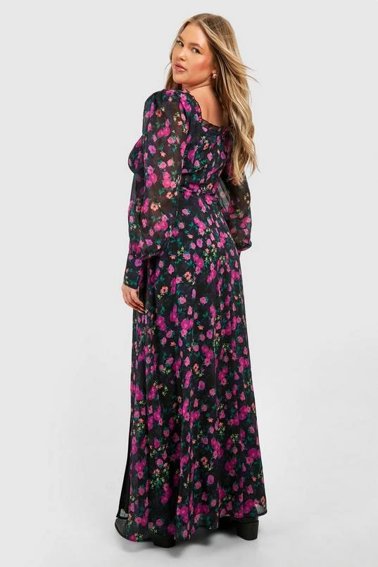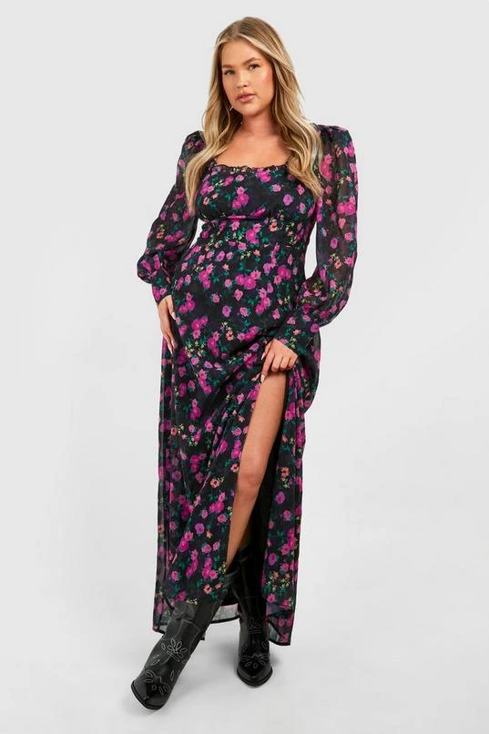 BOOHOO Plus Floral Corset Detail Maxi Milkmaid Dress