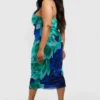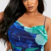 BOOHOO Plus Floral Mesh Cowl Neck Maxi Dress