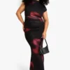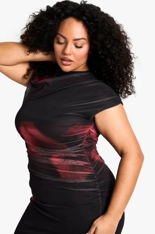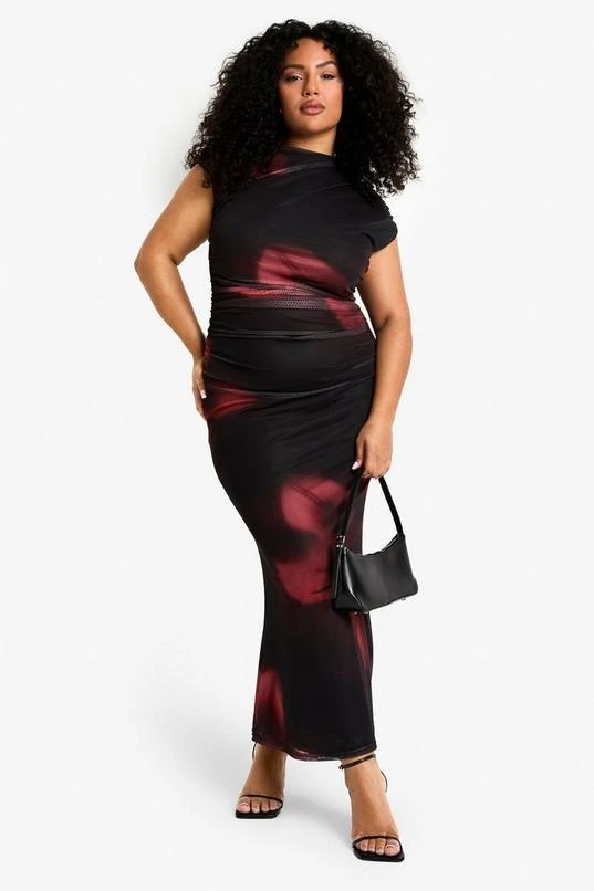 BOOHOO Plus Floral Mesh Rouched Maxi Dress