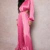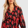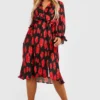 BOOHOO Plus Floral Pleated Satin Plunge Midi Dress