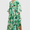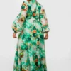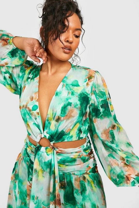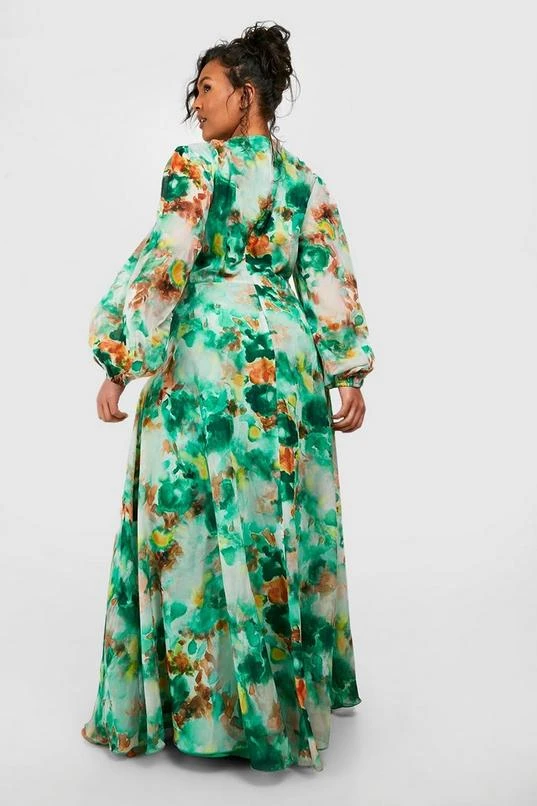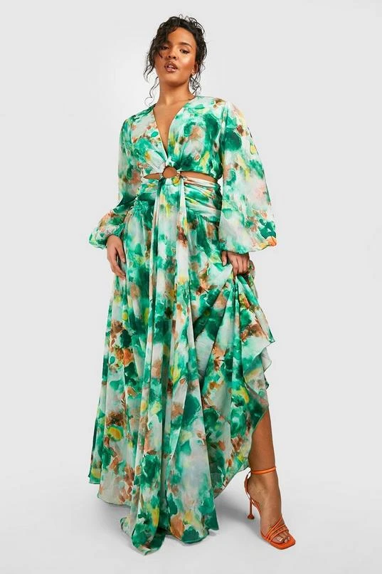 BOOHOO Plus Floral Print Chiffon Cut Out Maxi Dress