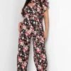 BOOHOO Plus Floral Print Key Hole Wide Leg Jumpsuit