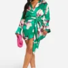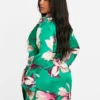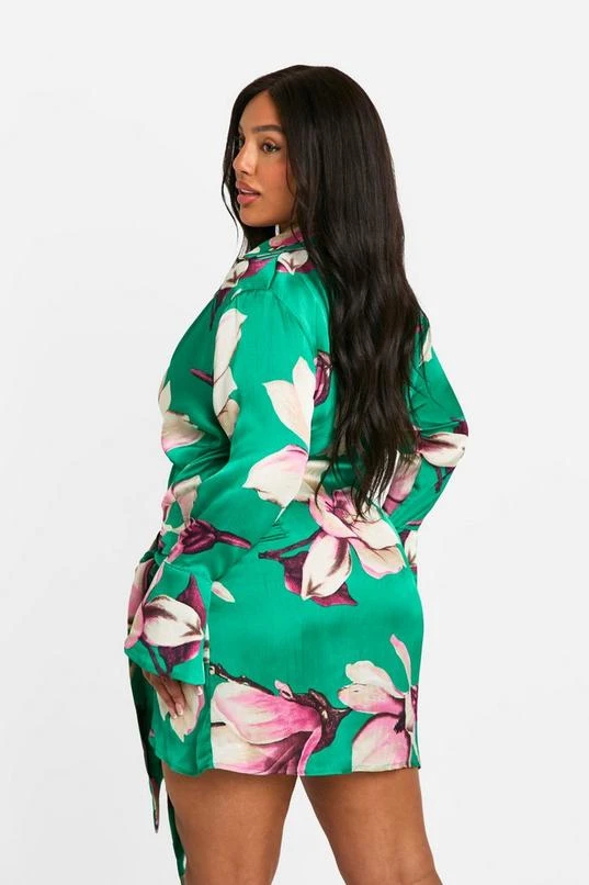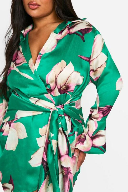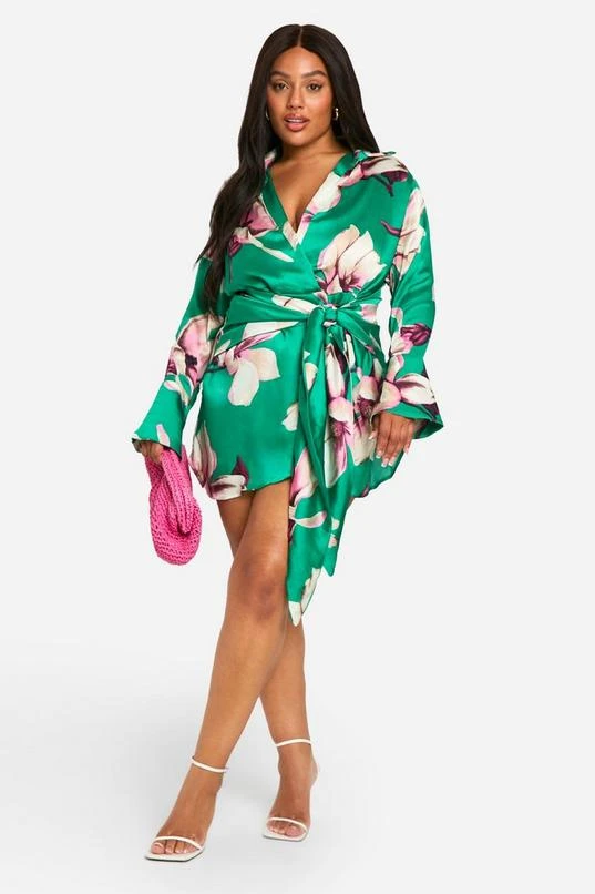 BOOHOO Plus Floral Print Tie Waist Shirt Wrap Dress