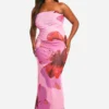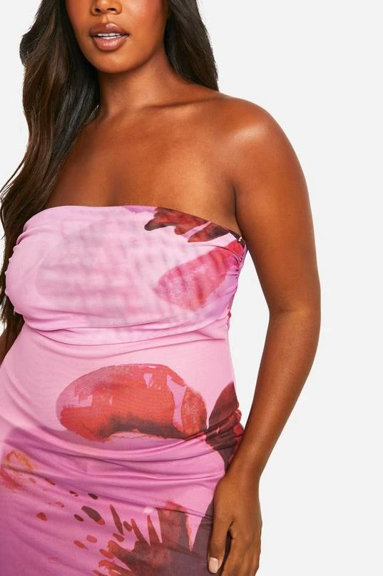 BOOHOO Plus Floral Printed Bandeau Midaxi Dress