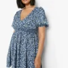 BOOHOO Plus Floral Puff Shirred Waist Skater Dress