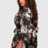 BOOHOO Plus Floral Satin Ruffle Wrap Dress