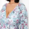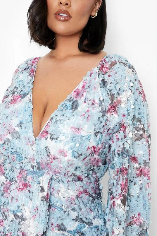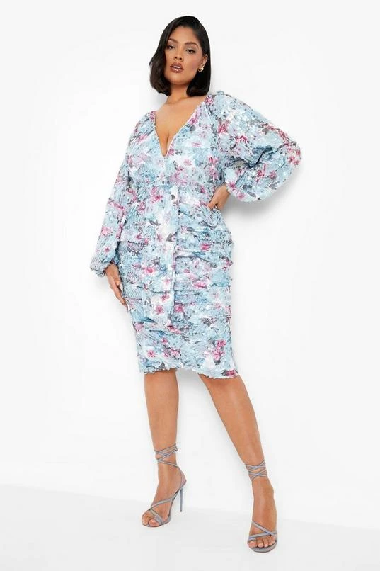 BOOHOO Plus Floral Sequin Puff Sleeve Midi Dress