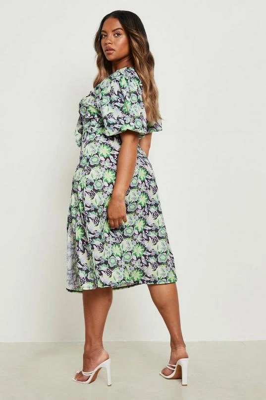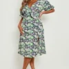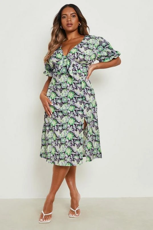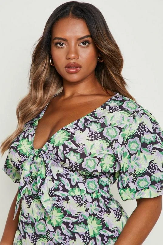 BOOHOO Plus Floral Tie Front Midi Dress