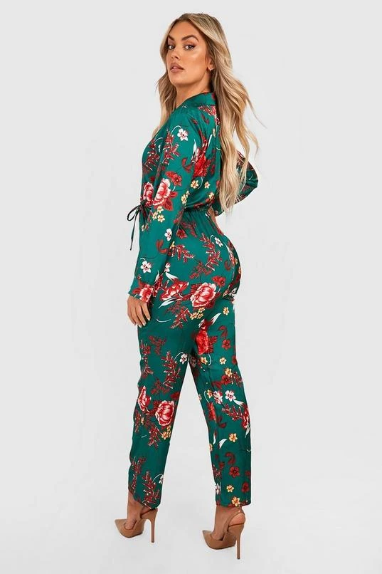 BOOHOO Plus Floral Tie Waist Jumpsuit